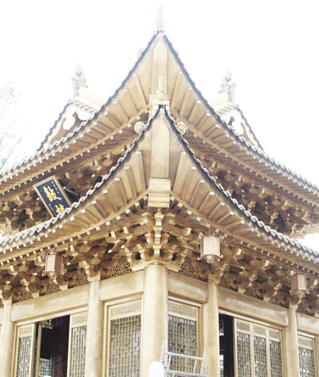 斗拱,是中国建筑上特有的构件,是由方形的斗、升、拱、翘、昂组成。是较大建筑物的柱与屋顶间之过渡部份。其功用在于承受上部支出的屋檐,将其重量或直接集中到柱上,或间接的先纳至额枋上再转到柱上。一般上,凡是非常重要或带纪念性的建筑物,才有斗拱的安置。
