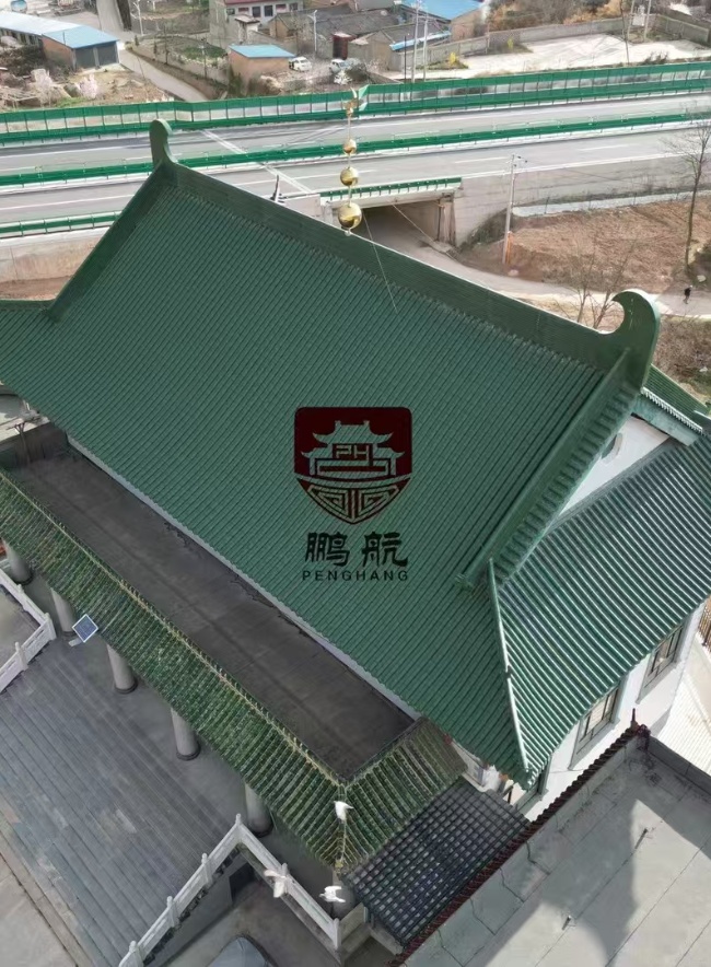 西安鹏航的铝镁锰合金瓦,凭借优异性能成为张家川清真寺改造的理想之选。其自重轻的特性,有效减轻了清真寺屋面的承重压力,避免对原有建筑结构造成损伤;卓越的耐老化、耐腐朽能力,使其能够从容应对张家川地区干燥多风、温差较大的气候条件,即便历经多年风雨,依然坚固如初,大大延长了屋面使用寿命,实现长期免维护维修,为清真寺节省大量后期养护成本。同时,瓦片表面易清洁的特质,让清真寺屋面时刻保持整洁庄严,减少了日常清洁工作的难度与频率。