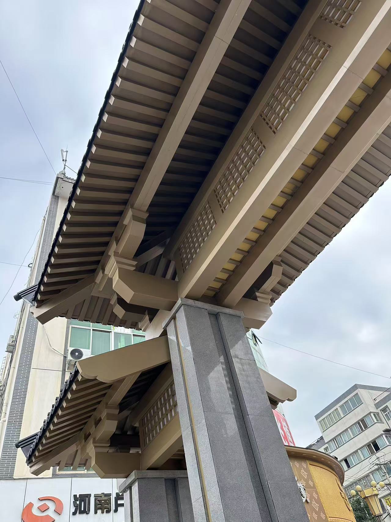 相较于传统建筑材料,全铝古建产品拥有无可比拟的优势。铝材质自身重量轻,大幅降低了建筑整体承重,尤其适用于古建筑修缮时对原有结构的保护;其耐腐蚀性极强,无论是潮湿多雨的南方,还是风沙较大的北方,都能有效抵御自然环境侵蚀,延长建筑使用寿命。同时,全铝古建产品可实现高度定制化,从颜色到造型,从尺寸到纹理,都能精准还原传统古建筑的韵味,让每一处飞檐翘角、斗拱梁柱,都彰显出古典之美。